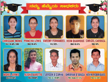 In all 7 SSLC students and 3 PUC students were felicitated in the presence of their parents. Miss Chrissane Monis topped the SSLC group scoring 95.40% in CBSC stream and Miss Princivia Lewis scoring 95.40% under state syllabus. Master Joyson D’Cunha scored 94.66% in PUC Science.