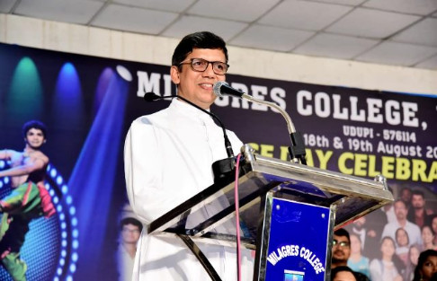Then it was the turn to listen to the presidential address by V Rev Fr Valerian Mendonca. While congratulating Two rank holders in Renita and Swathi and Gold Medalist Anusha in academic fields, and all the achievers in extra and co-curricular, sports and games, who not only brought name for themselves and family but also fame for this Milagres College… while referring the chief Guests speech and endorsed that knowledge with life skills are the need of the day.