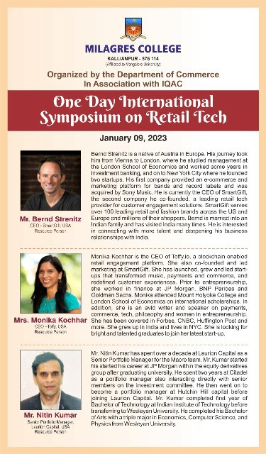 One day International Symposium, Retail Tech, was held at Milagres College Kallianpur.