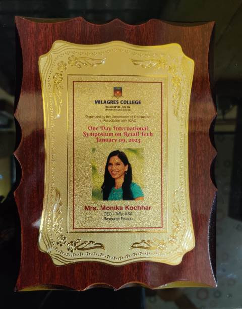 Mrs Monica Kochhar shared her own experiences and observed that this decade rightly belong to flourishing and fast developing Incredible India, where it opened up for progress. Retail i.0 to Retail 3.0 in facilitating Shopping journey now reached to a stage not physical but digital. She emphasised on young would be graduates to equip themselves to be able to stand on their legs and look within themselves to reinvent their strengths and then collaborate with right partners for business start ups.