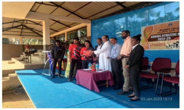 The annual sports meet of Milagres College Kailianpur was held today, Friday, January 20, 2023 in the College grounds with much enthusiasm and festivities. Dr Narayan Prabhu, Assistant Director of Physical Education, MAHE and also an alumnus of the college was the chief guest. Speaking on the occasion Dr Prabhu applauded the efforts of Milagres College to promote sportsmanship among the students righty from its inception and as a result he was able to achieve his goals in the field of sports because of the dedication of then Physical Director Mr Augustine Dais and the college in sports. He also added to say that the college is still keeping up the same tradition and he could see the same quality even today as the Milagres students are doing wonders in the field of sports.