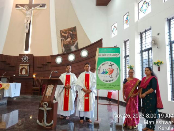 Simultaneously, all churches across the Mangalore diocese participated in the inauguration, unveiling the Jubilee logo, reciting dedicated prayers, and singing the Jubilee Song. Parish Priests across these churches elucidated the significance of the Logo and its symbolism to the congregations. Additionally, congregants were treated to a short video message from Bishop Peter Paul Saldanha regarding the Jubilee 2025.