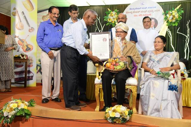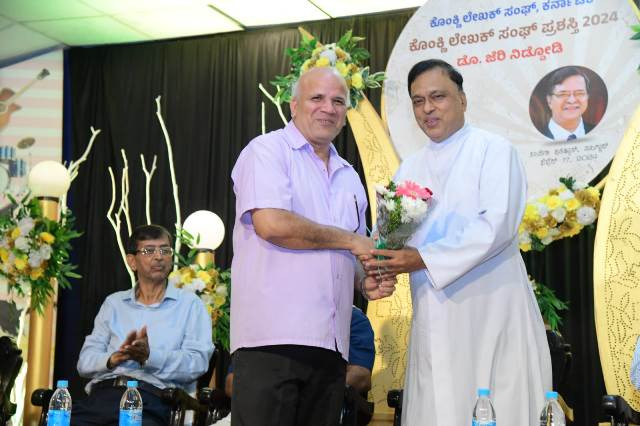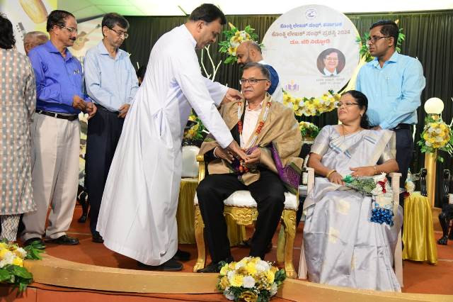 The Konkani Writers’ Association Literary award 2024 was handed over to famous Konkani Writer , ex-Principal of Milagrace College, Kallianpur, Dr. Gerald Pinto,(known by the pen-name Jerry, Niddodi) at a grand function organised at Sandesha Prathishtan, Bajjodi, Mangalore on 17th February 2024. Rev. Fr. Dr. Ronald Serrao, Rector of St. Joseph Seminary Jeppu, Mangalore was the chief guest and Prof. T.A. N. Khandige, Professor, Alva’s College, Moddbidri was the guest of honour.