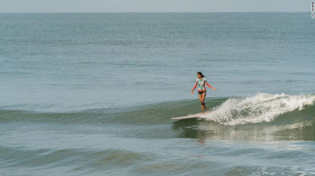 Over the years, she has not only seen the sport grow in India -- estimating there are now a couple hundred people surfing competitively -- but has also witnessed a shift in attitude towards the ocean, particularly among the fishing communities that have taken up surfing.