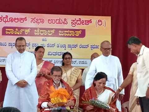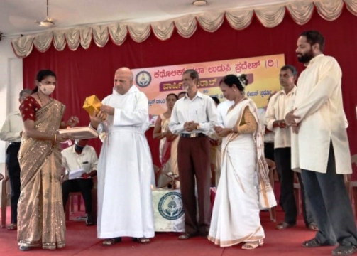The distribution of Prizes and Trophies – to the winners of Francis Danty Memorial Kannada Literary Award to Fr Chetan Lobo, OFM Cap for his ‘Chetana Chintana’ and recently held Denis DSilva Memorial Essay Competitions held in 2021, at the Udupi Pradesh Level in two categories viz High School and Youth of the Diocese in Konkani.