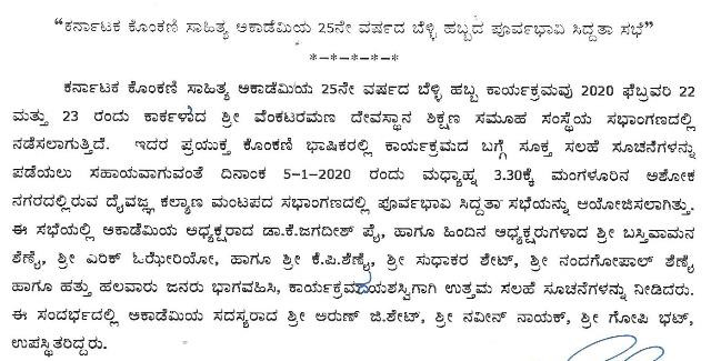 ಕರ್ನಾಟಕ ಕೊಂಕಣಿ ಸಾಹಿತ್ಯ ಅಕಾಡೆಮಿ ಬೆಳ್ಳಿ ಹಬ್ಬ ಪೂರ್ವಾಭಾವಿ ಸಭೆ