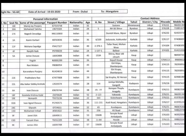 The Udupi district administration has released the list of 21 people and has requested them to report and co-operated with the officials for testing.