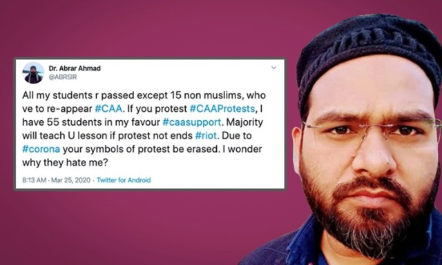 Professor Dr Abrar Ahmed, however, said his tweet had been “misunderstood” and he had posted it as a “satire” on how minorities are being “targeted” by the Citizenship (Amendment) Act (CAA).