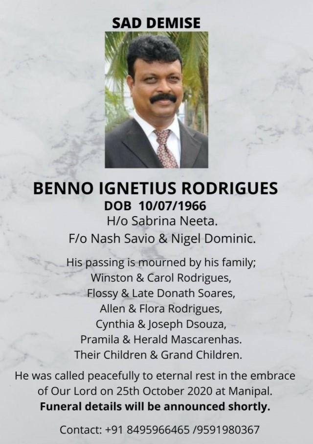 Sad Demise: Benno Ignetius Rodrigues, Kallianpur.