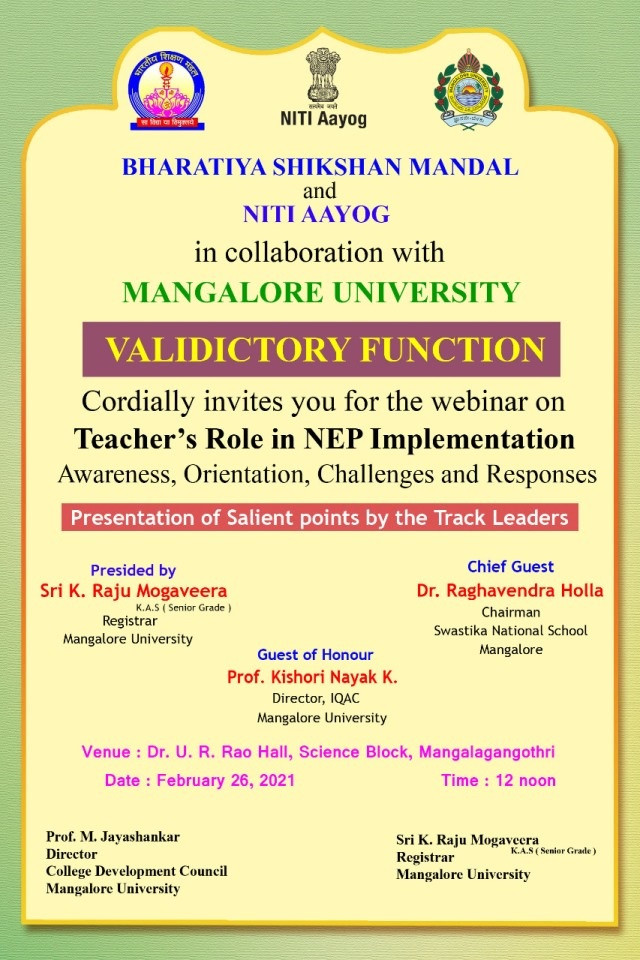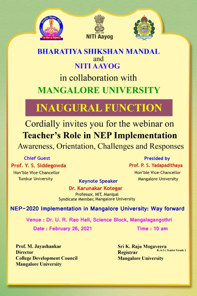ಮಂಗಳೂರು ವಿವಿ: ನೂತನ ಶಿಕ್ಷಣ ಪದ್ಧತಿಯಲ್ಲಿ ಶಿಕ್ಷಕನ ಪಾತ್ರದ ಕುರಿತು ವೆಬಿನಾರ್