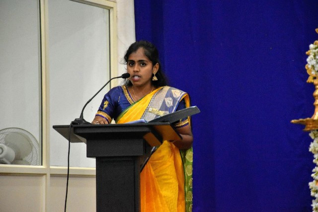 The programme commenced by the procession of the present and the new office bearers into the auditorium. Ms Reine and group invoked the blessings of the almighty by a melodious and meaningful prayer song.