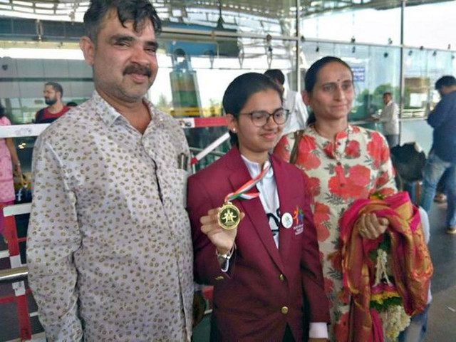 Ms. Prabhu arrived at the airport with her father Vivekananda Prabhu, a saw mill owner; mother Shantala Prabhu, a homemaker; and elder brother Rahul Prabhu. Mangaluru City South MLA D. Vedavyas Kamath, former MLA Yogish Bhat and former BJP district president Pratap Simha Nayak, welcomed them.