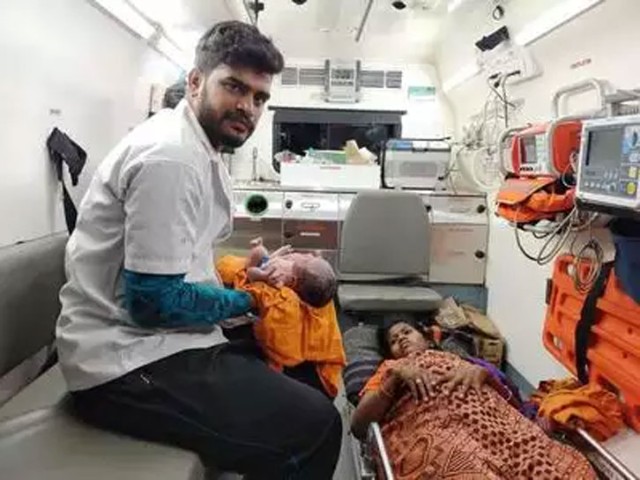 Shruthi, a resident of Kulai was being taken to Lady Goschen hospital when she went into labour.The ambulance was stopped by the roadside near Pabnambur here and ambulance attendant Avinash along with help from driver Basheer made all arrangements to ensure that the woman delivers the baby safely inside the ambulance.