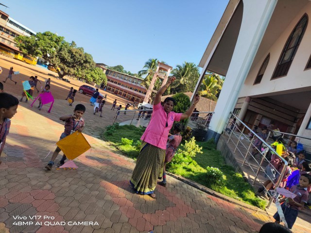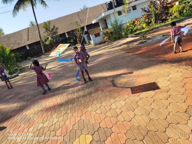 Our LKG and UKG teachers Mrs. Anuradha and Mrs.Sandhya helped the students to fly the kites as they sang the rhymes about the kites. This is one of the way help the children to learn through activates. We could see the glow happiness on the children’s face. We concluded the kite festival with sing- songs.