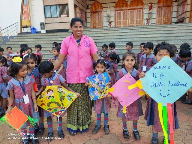 On 23/01/2020 Nirmala English Medium Kindergarten school celebrated, kite festival at our school. All the L.K.G and U.K.G children actively and enthusiastically brought their kites.