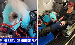 A Michigan woman startled other passengers on a recent series of flights when she brought aboard a mini-service horse and traveled with him in first class to California.