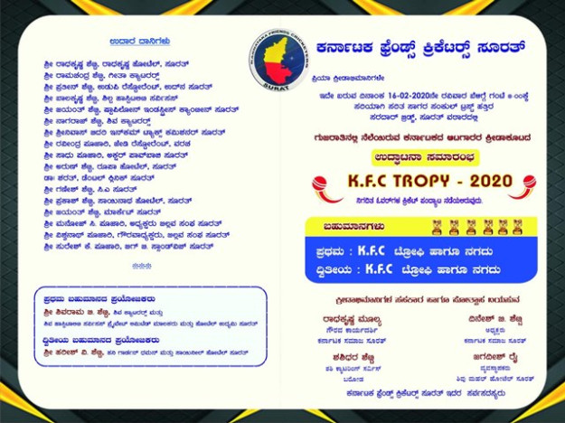 ಕರ್ನಾಟಕ ಫ್ರೆಂಡ್ಸ್ ಕ್ರಿಕೆಟರ್ಸ್ ಸೂರತ್ ಆಯೋಜಿಸಿದ್ದ ಕ್ರಿಕೆಟ್ ಪಂದ್ಯಾಟ-2020