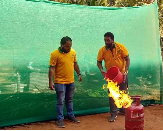 ಗ್ಯಾಸ್ ಸಿಲಿಂಡರ್ಗೆ ಬೆಂಕಿ ತಗುಲಿದಾಗ ಅದನ್ನು ನಂದಿಸುವುದು ಹೇಗೆ? ಹಾಗೂ ಇತರ ವಸ್ತುಗಳಿಗೆ ಬೆಂಕಿ ತಗುಲಿದಾಗ ನಂದಿಸುವುದು ಹೇಗೆ ? ಎಂಬ ಕುರಿತಾಗಿ ಪ್ರಾತ್ಯಕ್ಷಿಕೆ ಮಾಡಿ ತೋರಿಸಲಾಯಿತು.