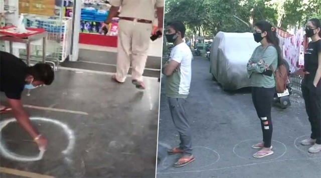 Mumbai: Inspired by photos outside a mall in China where the management drew circles on the floor to maintain social distancing to curb coronavirus spread, people in parts of Maharashtra have started implementing the same.