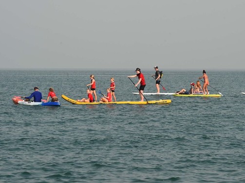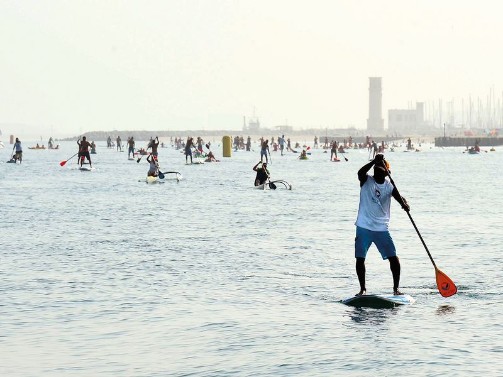 People take part in the stand-up paddling event. Some events this weekend are open to people of all ages and genders.