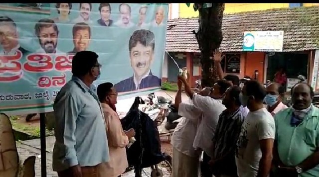 ಉಡುಪಿ ಇಲ್ಲಿನ ಪರ್ಕಳದ ಕಾಂಗ್ರೆಸ್ ಕಚೇರಿಯಲ್ಲಿ ಕೆಪಿಸಿಸಿ ನೂತನ ಅಧ್ಯಕ್ಷರಾಗಿ ಸಾರಥ್ಯವಹಿಸಿರುವ ಸನ್ಮಾನ್ಯ ಡಿ ಕೆ ಶಿವಕುಮಾರ್ ರವರ ಪದಗ್ರಹಣ ಕಾರ್ಯಕ್ರಮವನ್ನು ಉಡುಪಿಯ ಮಾಜಿ ಶಾಸಕರಾದ ಯು ಆರ್ ಸಭಾಪತಿಯವರು ದೀಪ ಬೆಳಗಿಸಿ ಉದ್ಘಾಟಿಸುವ ಮೂಲಕ ಚಾಲನೆ ಕೊಟ್ಟರು, ಈ ಸಂದರ್ಭದಲ್ಲಿ ಪರ್ಕಳದ ಕಾಂಗ್ರೆಸ್ ಮುಖಂಡ ಮೋಹನ್ ದಾಸ್ ನಾಯಕರವರು ಡಿಕೆಶಿ ಯವರ ಭಾವಚಿತ್ರಕ್ಕೆ ಹಾಲೆರೆದು, ಸರ್ವಕಾರ್ಯಕರ್ತರು ಜೊತೆಗೂಡಿ ತೆಂಗಿನಕಾಯಿ ಒಡೆದು ಶುಭಕೋರಿ ಜೈಕಾರಹಾಕುತ್ತಾ ಸಿಹಿತಿಂಡಿನೀಡಿಸಂಭ್ರಮಿಸಿದರು.