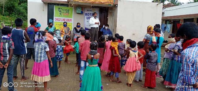 ಉಡುಪಿ : ಚೈಲ್ಡ್ಲೈನ್ 1098 ಉಡುಪಿ ಮತ್ತು ರೋಟರಿ ಉಡುಪಿ ಇವರ ಸಹಯೋಗದೊಂದಿಗೆ ಪ್ರಮೋದ್ ಮದ್ವರಾಜ್ ಬಡಾವಣೆ ಕೊಡಂಕೂರು, ಉಡುಪಿ ಇಲ್ಲಿ ಕೊರೋನಾ ಕುರಿತು ಜಾಗೃತಿ ಕಾರ್ಯಕ್ರಮ ಹಾಗೂ ಮಕ್ಕಳಿಗೆ ಮಾಸ್ಕನ್ನು ವಿತರಣೆಯನ್ನು ಹಮ್ಮಿಕೊಳ್ಳಲಾಯಿತು.
