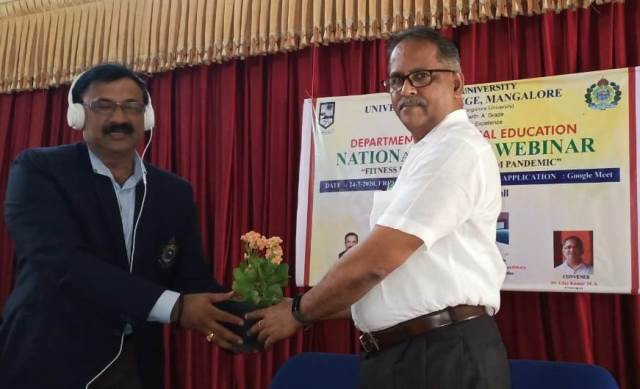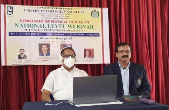 ಶುಕ್ರವಾರ ನಗರದ ವಿಶ್ವವಿದ್ಯಾನಿಲಯ ಕಾಲೇಜಿನ ದೈಹಿಕ ಶಿಕ್ಷಣ ವಿಭಾಗ ಆಯೋಜಿಸಿದ್ದ “ಸಾಂಕ್ರಾಮಿಕ ರೋಗದಿಂದ ರಕ್ಷಣೆಗಾಗಿ ಫಿಟ್ನೆಸ್” ಕುರಿತ ರಾಷ್ಟ್ರೀಯ ವೆಬಿನಾರ್ ಉದ್ಘಾಟಿಸಿ ಮಾತನಾಡಿದ ಅವರು ಫಿಟ್ನೆಸ್ ಕಾಪಾಡಿಕೊಳ್ಳುವುದರಿಂದ ನಾವು ಕೇವಲ ಬದುಕುಳಿಯದೆ, ಜೀವನವನ್ನು ನೆಮ್ಮದಿಯಾಗಿ, ಆರೋಗ್ಯಕರವಾಗಿ ಬಾಳಬಹುದು, ಎಂದರು. ಪ್ರಾಂಶುಪಾಲ ಡಾ. ಉದಯ್ ಕುಮಾರ್ ಎಂ.ಎ ಅವರು ಸ್ವಾಮಿ ವಿವೇಕಾನಂದರು ಹೇಳಿದ ಆರೋಗ್ಯಕರ ಮನಸ್ಸು ಮತ್ತು ಉತ್ತಮ ದೇಹ ಎಂಬ ಮಾತನ್ನು ಉಲ್ಲೇಖಿಸಿದರು. ಫಿಟ್ನೆಸ್ ನಮ್ಮ ದುಡಿಮೆಗೆ ಮಾತ್ರವಲ್ಲ, ರೋಗನಿರೋಧಕ ಶಕ್ತಿಯನ್ನು ಕಾಪಾಡಿಕೊಳ್ಳಲೂ ಅಗತ್ಯ, ಎಂದರು.