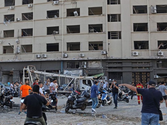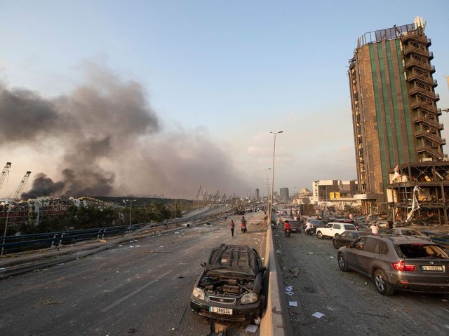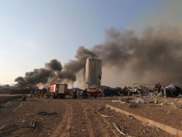 The scene of an explosion near the the port in the Lebanese capital Beirut.