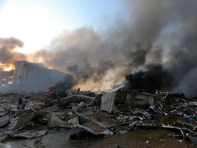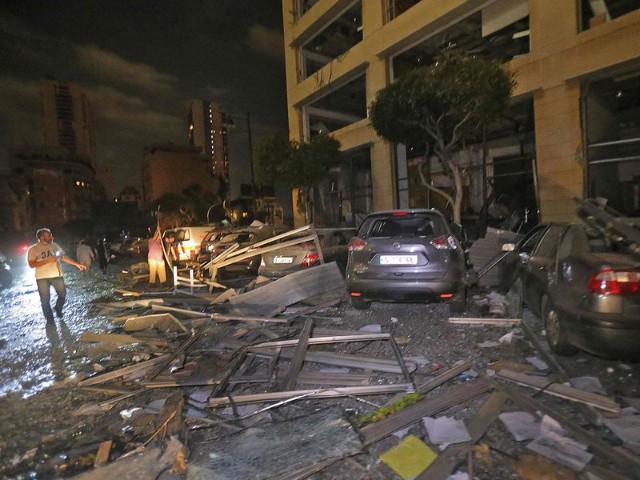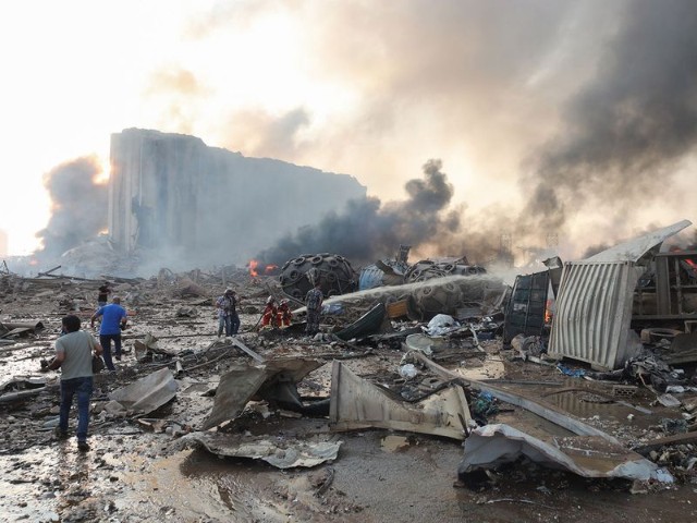 People inspect the site of Tuesday’s blast in Beirut’s port area, Lebanon.