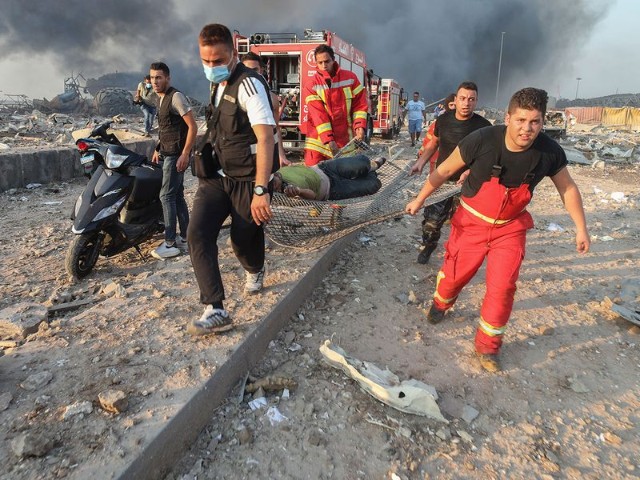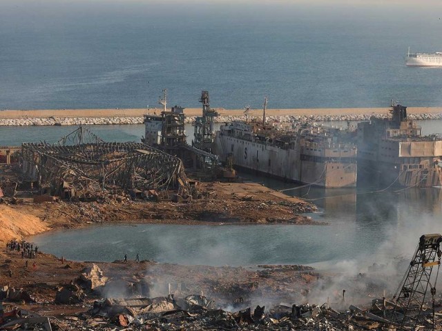 The scene of an explosion at the port in the Lebanese capital Beirut.