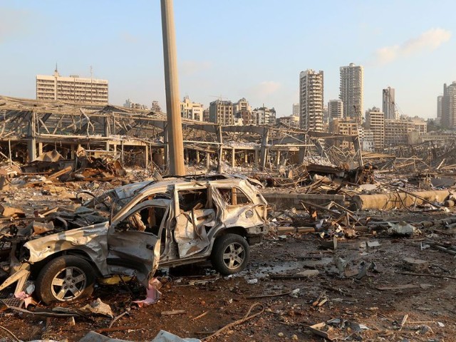 Destruction is seen after a massive explosion in Beirut, Lebanon.