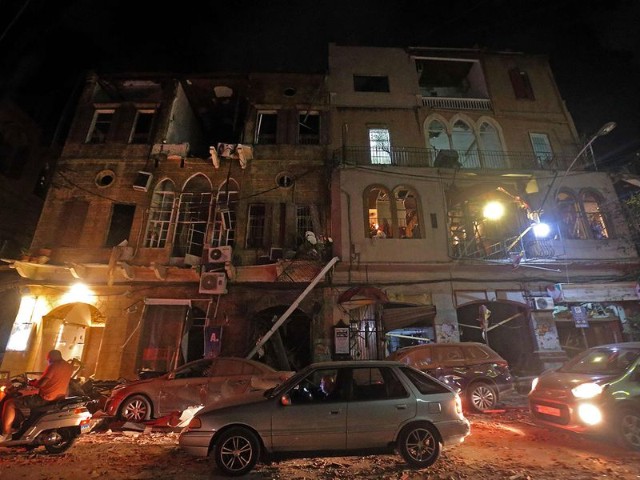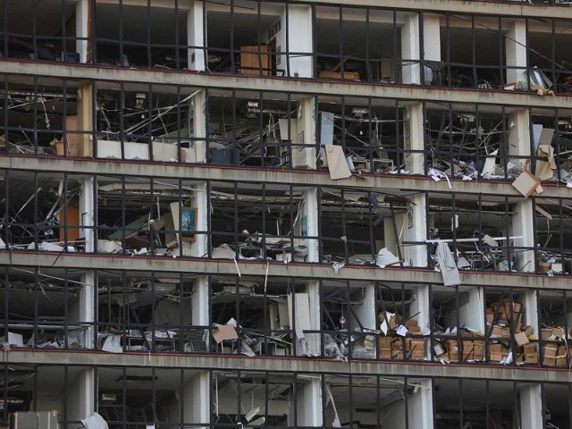 A view shows the damaged facade of a building following Tuesday’s blast in Beirut’s port area, Lebanon