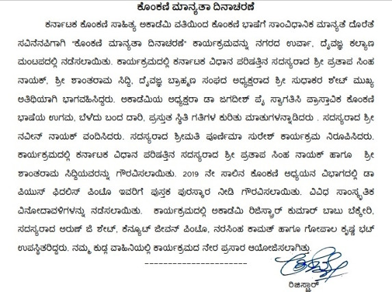 ಕೊಂಕಣಿ ಮಾನ್ಯತಾ ದಿನ ಆಚರಣೆ