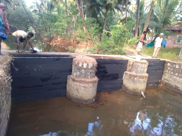 ಪಡುತೋನ್ಸೆ ಗ್ರಾಮದ ಕೆಪ್ಪತೋಡಿಗೆ ಹಲಗೆ ಹಾಕಿ ಉಪ್ಪು ನೀರಿಗೆ ತಡೆ