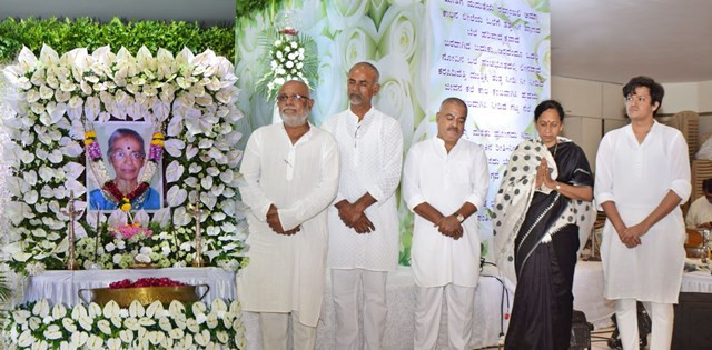 ಬಂಟರ ಭವನದ ಶ್ರೀ ಮಹಾವಿಷ್ಣು ದೇವಸ್ಥಾನÀಲ್ಲಿನ ದೇವಸ್ಥಾನದ ಪ್ರಧಾನ ಅರ್ಚಕ ವಿದ್ವಾನ್ ಅರವಿಂದ ಬನ್ನಿತ್ತಾಯ ಪ್ರತಿಷ್ಠಾಪಿಸಲ್ಪಟ್ಟ ದೇವರಿಗೆ ಪೂಜೆ ನೆರವೇರಿಸಿ ಅಗಲಿದ ದಿವ್ಯಾತ್ಮಕ್ಕೆ ಸದ್ಗತಿ ಕರುಣಿಸಲೆಂದು ಪ್ರಾಥಿರ್üಸಿ ಉಪಸ್ಥಿತ ಅಪ್ಪಿ ಶೆಟ್ಟಿ ಪರಿವಾರಕ್ಕೆ ಪ್ರಸಾದ ನೀಡಿ ಹರಸಿದರು. ಈ ಸಂದರ್ಭದಲ್ಲಿ ಮೃತÀರ ಸುಪುತ್ರರಾದ ಆನಂದ್ ಕುಮಾರ್, ಡಾ| ಆರ್.ಕೆ ಶೆಟ್ಟಿ, ಮೋಹನ್ ಕುಮಾರ್, ಸೊಸೆ ಅನಿತಾ ಆರ್.ಶೆಟ್ಟಿ, ಮೊಮ್ಮಗ ಶ್ರೇಯಸ್ ಆರ್.ಶೆಟ್ಟಿ, ಬಂಟರ ಸಂಘದ ಜ್ಞಾನ ಮಂದಿರ ಸಮಿತಿ ಕಾರ್ಯಧ್ಯಕ್ಷ ಕೃಷ್ಣ ವಿ.ಶೆಟ್ಟಿ ಉಪಸ್ಥಿತರಿದ್ದರು.