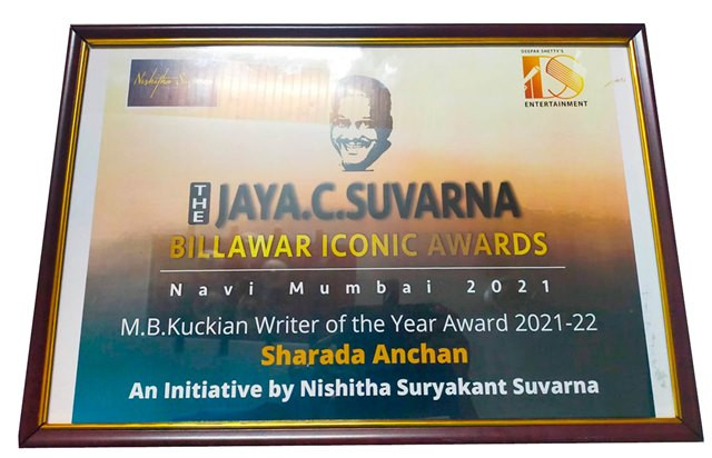 ಶಾರದಾ ಅಂಚನ್ ಕೊಡವೂರು ಮುಡಿಗೆ `ಎಂ.ಬಿ ಕುಕ್ಯಾನ್ ರೈಟರ್ ಆಫ್ ದ ಇಯರ್ ಪ್ರಶಸ್ತಿ’