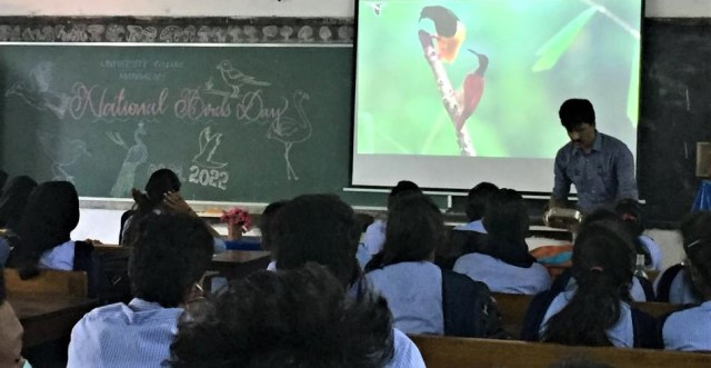 ಈ ಸಂದರ್ಭದಲ್ಲಿ ಜೀವಶಾಸ್ತ್ರ ವಿಭಾಗದ ಪ್ರಾಧ್ಯಾಪಿಕೆ ಡಾ. ನಾಗರತ್ನ ಮಾತನಾಡಿ, ಪಕ್ಷಿಗಳು ಪ್ರಕೃತಿಯ ಬಹುಮುಖ್ಯ ಭಾಗ. ಮಾನವನ ಬದುಕಿಗೆ ಬೇಕಾದ ಹಲವು ಪಾಠಗಳನ್ನು ಪಕ್ಷಿಗಳ ವೀಕ್ಷಣೆಯಿಂದ ಕಲಿಯಬಹುದಾಗಿದೆ. ಬೆಳೆ ಹಾಳು ಮಾಡುವ ಹುಳು- ಹುಪ್ಪಟೆಗಳನ್ನು ತಿನ್ನುವ ಪಕ್ಷಿಗಳು ರೈತ ಸ್ನೇಹಿ, ಎಂದು ತಿಳಿಸಿದರು.