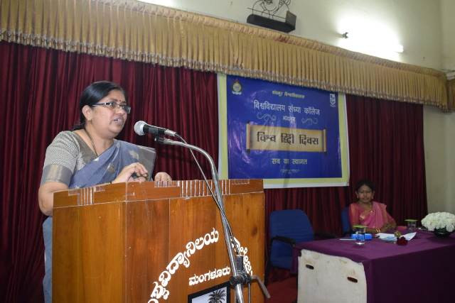 Dr. Subhashini Srivathsa, Principal of University Evening College, Mangalore presided over the function. She said one cannot stop usage of language, but can unite through the language. If one travels to Northern parts of our country will get the feeling of Indianism through Hindi Language. When one crosses the border of our state it is the Hindi language that becomes a tool of communication.