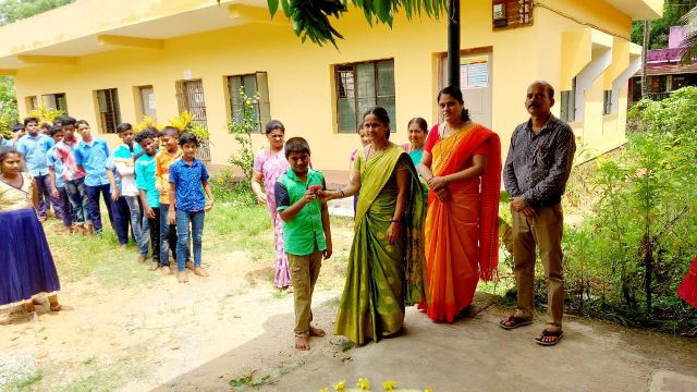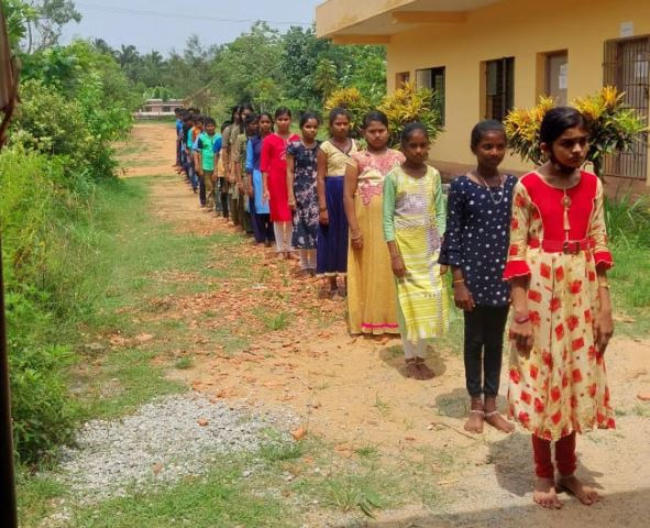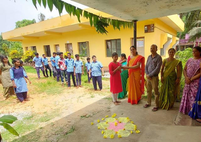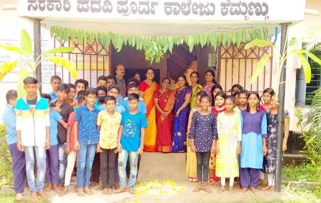 Govt. Jr. College, Kemmannu, Welcomes students with Flowers.