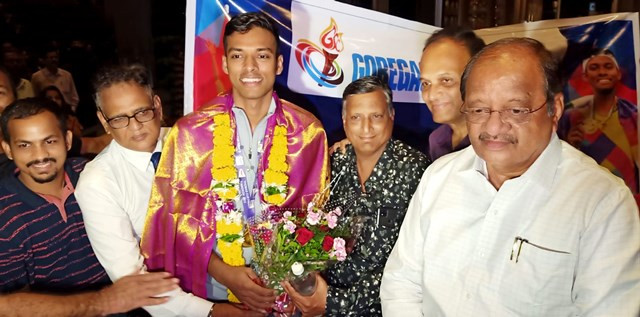 ಅಂತರಾಷ್ಟ್ರೀಯ ಕ್ರೀಡಾ ವಿಜೇತನಾಗಿ ಭಾರತ ಮಾತೆಯ ಪುಣ್ಯಭೂಮಿಯಲ್ಲಿ ವಿಮಾನ ಇಳಿಯುವುದನ್ನು ಭಾರತವು ಆಕಾಶದಿಂದ ಕಾಯುತ್ತಿತ್ತು, ಅದರಲ್ಲಿ ಈ ಆಟಗಾರ ತನ್ನ ಸಹಚರರೊಂದಿಗೆ ತಾಯ್ನಾಡಿಗೆ ಹಿಂತಿರುಗುತ್ತಿರುವುದನ್ನು ಭಾರತೀಯ ಕ್ರೀಡಾ ಪ್ರಾಧಿಕಾರ ಮತ್ತು ಗೋರೆಗಾಂವ್ ಸ್ಪೋರ್ಟ್ಸ್ ಕ್ಲಬ್, ಪೆÇಯಿಸರ್ ಜಿಮ್ಖಾನದÀ ಪದಾಧಿಕಾರಿಗಳು ವಿಶೇಷವಾಗಿ ಉಪಸ್ಥಿತರಿದ್ದರು.