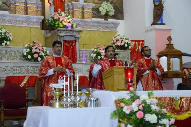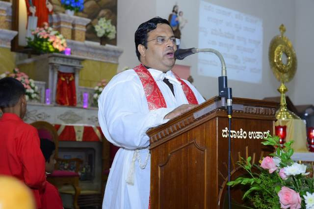 5.30 pm Mass Rev Fr Rovel D’Souza, Director Infant Jesus Shrine Bikarnakatte was the main celebrant , Rev Fr Peter Gonsalves , Rev Fr Melwin Pinto Concelebrated the mass. The Choir was from Gurpur under the leadership of Vijay- Offbeat Music. Special prayers offered for all the parents of the families.