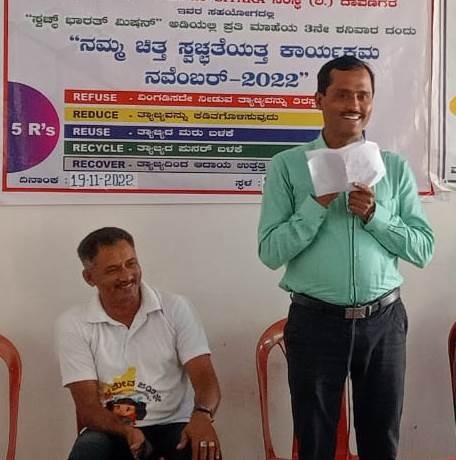 ನಗರಸಭೆಯ ಹಿರಿಯ ಆರೋಗ್ಯ ನಿರೀಕ್ಷಕ ಕರುಣಾಕರ್ ಮಾತನಾಡಿ, ಈ ಕಾರ್ಯಕ್ರಮವು ಐದು ಅಂಶಗಳನ್ನು ಒಳಗೊಂಡಿದ್ದು, ಕಸ ವಿಂಗಡಣೆ ಮಾಡದೆ ನೀಡಿದರೆ ತಿರಸ್ಕರಿಸುವುದು, ಸಾಧ್ಯ ವಾದಷ್ಟು ಕಸ ಮಾಡುವುದು, ಸಂಗ್ರಹಿಸಿರುವ ಕಸದಲ್ಲಿ ಬಳಸಲು ಬರುವಂತಹ ವಸ್ತುಗಳನ್ನು ಮರುಬಳಕೆ ಮಾಡುವುದು, ಬಳಸಿ ಬಿಸಾಡಿದ ವಸ್ತುಗಳನ್ನು ಆಧುನಿಕ ತಂತ್ರಜ್ಞಾನದ ಮೂಲಕ ಮರು ಉತ್ಪಾದಿಸುವುದು ಹಾಗೂ ತ್ಯಾಜ್ಯದಿಂದ ಆದಾಯ ಗಳಿಸುವುದಾಗಿದೆ. ಎಲ್ಲರೂ ಸ್ವಚ್ಛತೆಯ ಕಡೆಗೆ ಗಮನಹರಿಸುವಂತೆ ತಿಳಿಸಿದರು.