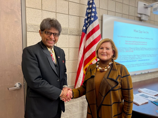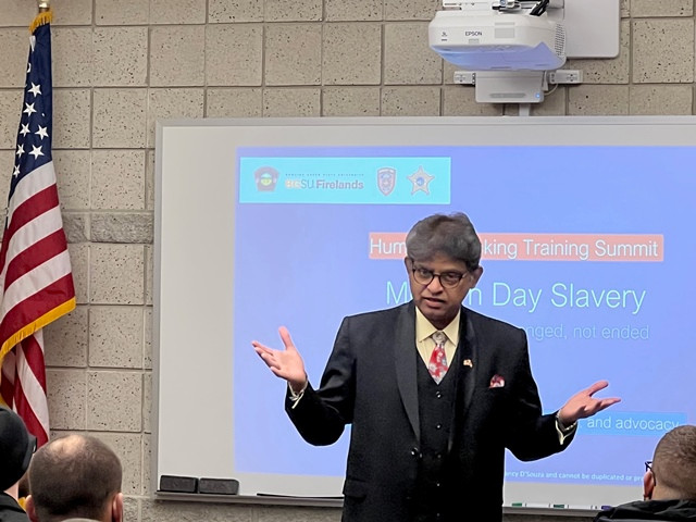Dr. Lara Wilken from Bowling Green State University invited world renowned ‘Survivor Ambassador’ Harold D’Souza to train the State Highway Patrol, Fire Departments, Perkins Township Division of Police, Sandusky Police Officials and the Sheriff’s Departments to identify victims of Labor Trafficking in the United States of America.