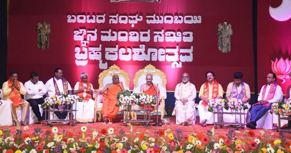 ಬಂಟರ ಸಂಘ ಮುಂಬಯಿ ಇದರ ಶ್ರೀ ಮಹಾವಿಷ್ಣು ದೇವಸ್ಥಾನದ (ಜ್ಞಾನ ಮಂದಿರ) ಅಷ್ಟಬಂಧ ಬ್ರಹ್ಮಕಲಶೋತ್ಸವ ನಿಮಿತ್ತ ಇಂದಿಲ್ಲಿ ಗುರುವಾರ ಪೂರ್ವಾಹ್ನ ಕುರ್ಲಾ ಪೂರ್ವದಲ್ಲಿನ ಬಂಟರ ಭವನದ ಶ್ರೀಮತಿ ರಾಧಾಬಾಯಿ ತಿಮ್ಮಪ್ಪ ಭಂಡಾರಿ ಸಭಾಗೃಹದಲ್ಲಿ ನೆರವೇರಿಸಲ್ಪಟ್ಟ ಧಾರ್ಮಿಕ ಸಭಾ ಕಾರ್ಯಕ್ರಮ ಉದ್ಘಾಟಿಸಿ ನೆರೆದ ಸದ್ಭಕ್ತರನ್ನು ಅನುಗ್ರಹಿಸಿ ಪಲಿಮಾರುಶ್ರೀ ತಿಳಿಸಿದರು.
