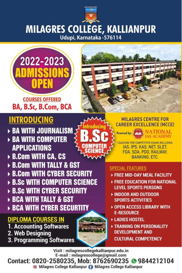 2022-2023 Admission Open at Milagres, College, Kallianpur