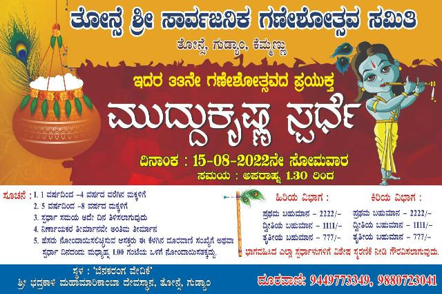 MUDDU KRISHNA Competiton on behalf of Shri Krishna Janmashtami Organised by Thonse Ganeshotsava Samiti Gudiam Kemmannu
