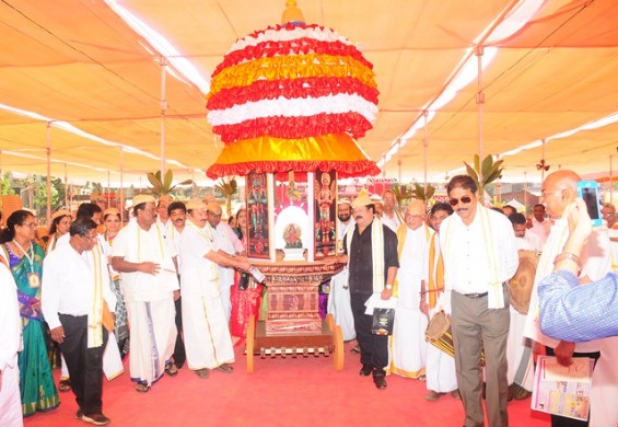 ಇಂದಿಲ್ಲಿ ಬೆಳಿಗ್ಗೆ ಉಪನಗರದ ಕಾಂದಿವಲಿ ಪೆÇಯಿಸರ್ ಇಲ್ಲಿನ ಸಪ್ತಾಹ ಮೈದಾನದಲ್ಲಿ ಆಯೋಜಿಸಲ್ಪಟ್ಟ ಸಮ್ಮೇಳನ ಸಭಾಂಗಣದಲ್ಲಿ ನಿರ್ಮಿತ ಬೀಡು ಮನೆತನದ ಅಂಗಳದಲ್ಲಿ ತೌಳವ ಸಂಸ್ಕೃತಿಯ ಮೆರಗುನೊಂದಿಗೆ ಉತ್ತರ ಮುಂಬಯಿ ಲೋಕಸಭಾ ಸಂಸದ ಗೋಪಾಲ ಸಿ.ಶೆಟ್ಟಿ ಧ್ವಜಾರೋಹಣಗೈದು (ಕೊಡಿ ಏರಿಸುವುದು), ಹಾಗೂ ಜಾಗತಿಕ ಬಂಟರ ಒಕ್ಕೂಟದ ಅಧ್ಯಕ್ಷ ಐಕಳ ಹರೀಶ್ ಶೆಟ್ಟಿ ತುಳುರಥದ ತೇರನ್ನು ಎಳೆದು ಮತ್ತು ಬಂಟರ ಸಂಘ ಮುಂಬಯಿ ಅಧ್ಯಕ್ಷ ಪದ್ಮನಾಭ ಎಸ್.ಪಯ್ಯಡೆ ಸಾಂಪ್ರ್ರದಾಯಿಕವಾಗಿ ತೆನೆ ಕಟ್ಟಿಕೊಂಡು ಸಾಂಕೇತಿಕವಾಗಿ ಮತ್ತು ಚೌತಿ, ಯುಗಾದಿ ಹಬ್ಬಗಳ ಸಡಗರದೊಂದಿಗೆ ಬೆಳಿಗ್ಗೆ ದ್ವಿದಿನಗಳ ವಿಶ್ವಮಟ್ಟದ ತುಳು ಸಮ್ಮೇಳನಕ್ಕೆ ವಿಧ್ಯುಕ್ತವಾಗಿ ಚಾಲನೆ ನೀಡಲಾಯಿತು. ರವೀಂದ್ರ ಎಸ್.ಶಾಂತಿ ಪೂಜೆಗಳನ್ನು ನೇರವೇರಿಸಿದರು.