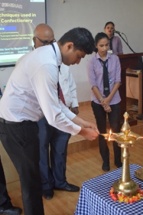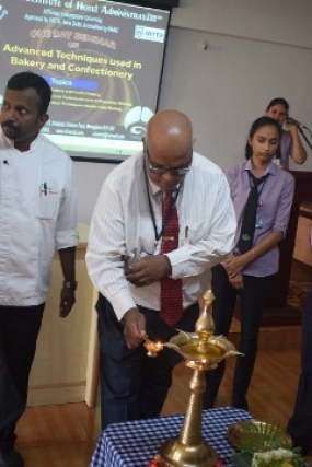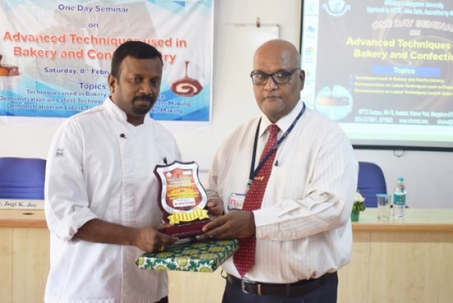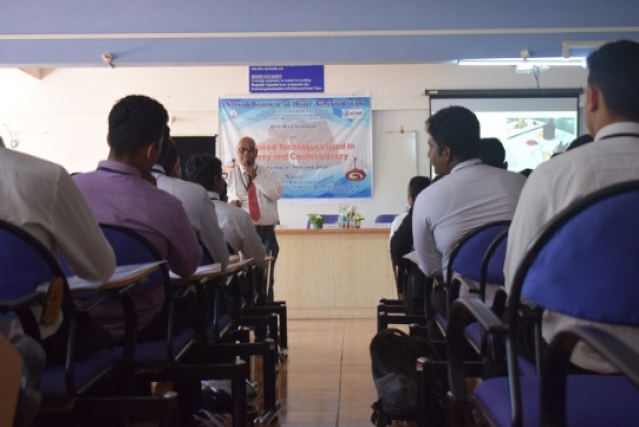 Resource person Prof. Amar Z. Cherian, Principal of the College who spoke of the Techniques used in bakery and confectionary and latest styles of plating dessert.