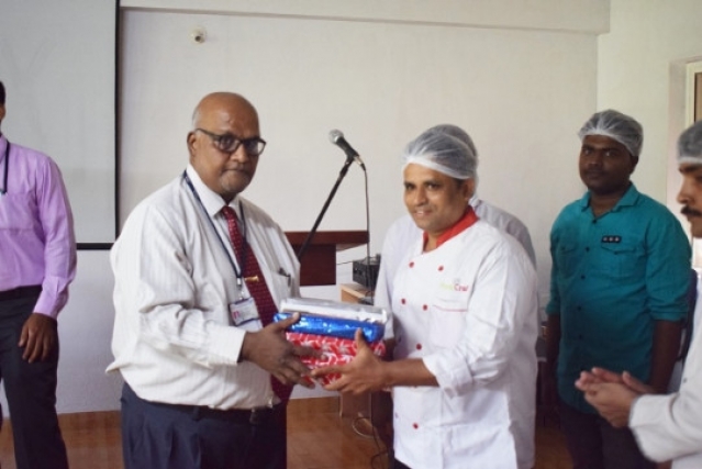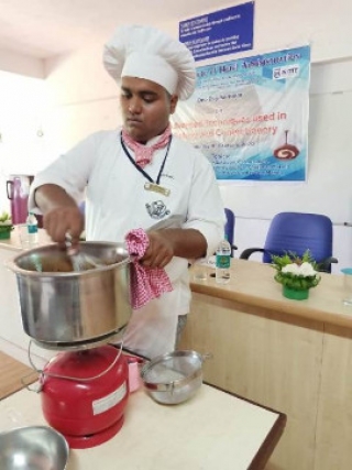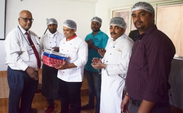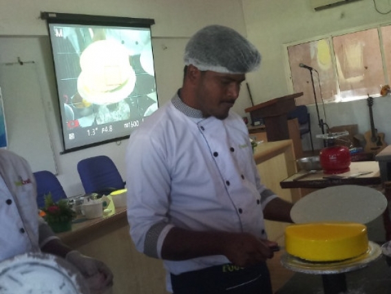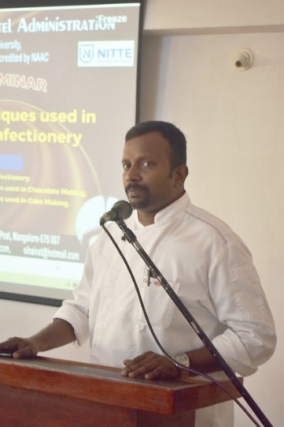 Resource person Chef Sathish Kundar, Pastry chef, The Yenepoya Food Craft Demonstrate latest Techniques used in chocolate making cake icing.