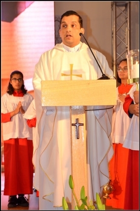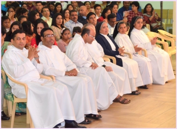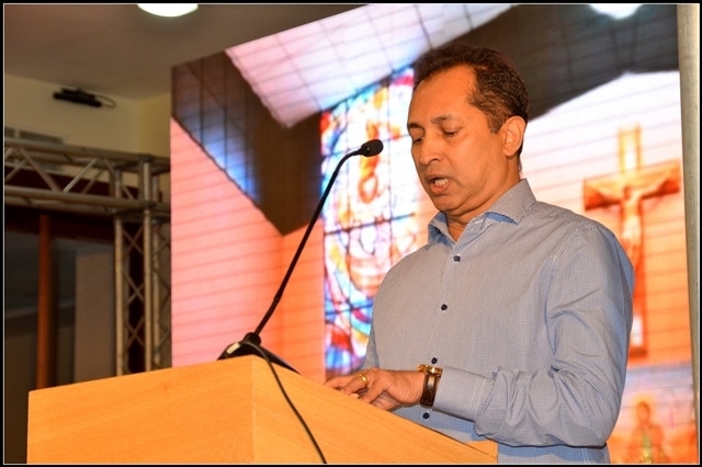 The celebration continued with a well-organized social program. Mrs. Yvonne Vaz, members of the Core Team of KPG extended the welcome speech. The Music Ministry of KPG then rendered a Theme Song specially composed for the occasion. The members of the Core Team with the priests sliced the Anniversary Cake. Rev. Fr. Stephen Lewis in his address urged all the faithful to become not just members of the prayer group but become persons of prayer. Mr. Deral Menezes, The Coordinator, presented the annual report of the activities.